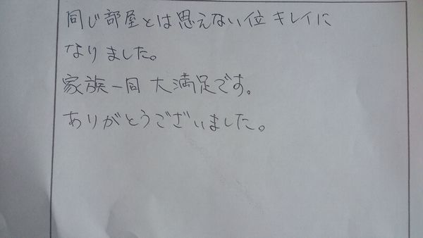 同じ部屋とは思えない位キレイになりました。家族一同大満足です。